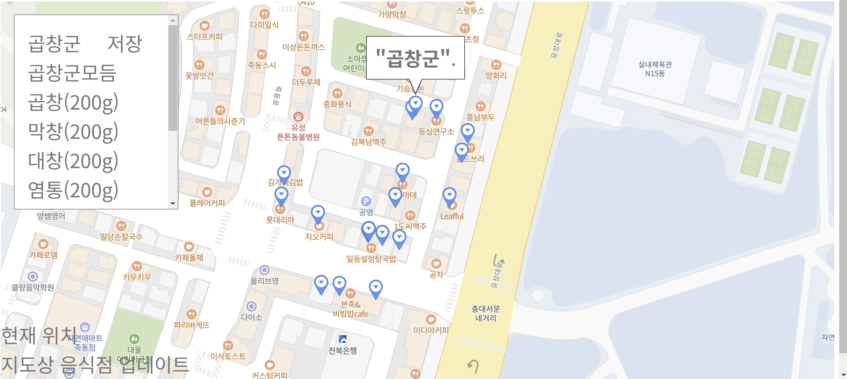 코드는 네이버 지도 api 에서 마커를 누르면 정보창이 나오는 함수에서 내가 원하는 코드를 추가해서 수정한것이다.