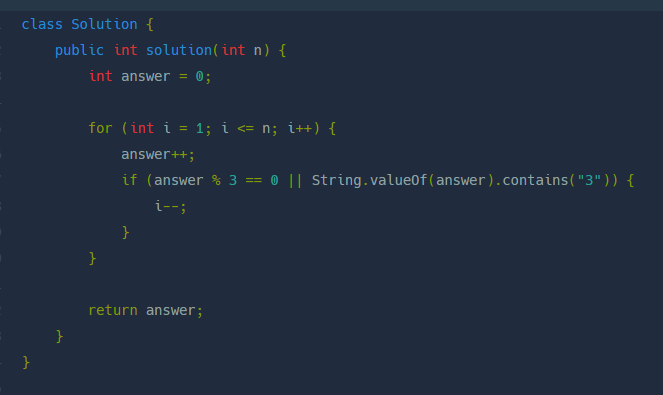 정수 n이 매개변수로 주어질 때, n을 3x 마을에서 사용하는 숫자로 바꿔 return하도록 solution 함수를 완성해주세요.