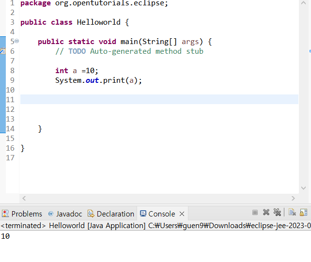 이렇게 10 이라는 결과가 나오게 된다. a 뒤에 다른 정수를 적게 되도 그 값이 나오게 될 것이다.