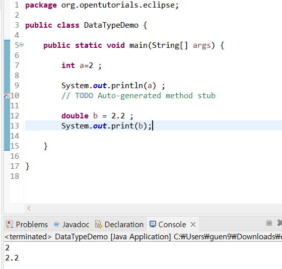 우리가 원하는건 정수의 값 2 이니까 이에 맞는 정수를 표현하는 데이터 타입인 'int'를 써야한다.