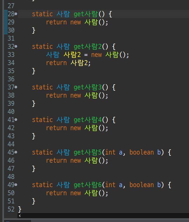 이런식으로 만들어주면 되고 반환값 타입을 적는 공간에 사람이라고 적는걸 잊지말자