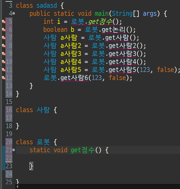 로봇.get정수 (); 가 에러가 있다고 뜨는데 저 형태는 메서드 형태이니까 메서드를 추가해보자